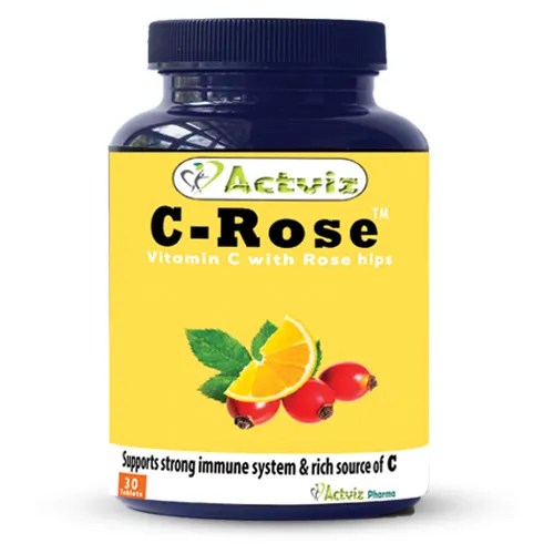 Actviz Brand C-Rose Ascorbic Acid and Rose hips include as a rich source of Vitamin C, C-Rose remedy for rheumatoid arthritis; reduces symptoms of knee and hip osteoarthritis; helps the immune system to fight off foreign invaders and out of control cells; facilitates fat metabolism; protects tissues from free radical damage; assists the nervous system by converting certain amino acids into neurotransmitters; prevents scurvy; protects joints and connective tissues; protects adrenal function; ability to prevent urinary bladder infections, and assist in treating dizziness and headaches; brewed into a decoction, can also be used to treat constipation; and Rose hips (Rose Canina) contain lots of iron and is a powerful anti-oxidant which fight against inflammation and Aging process.