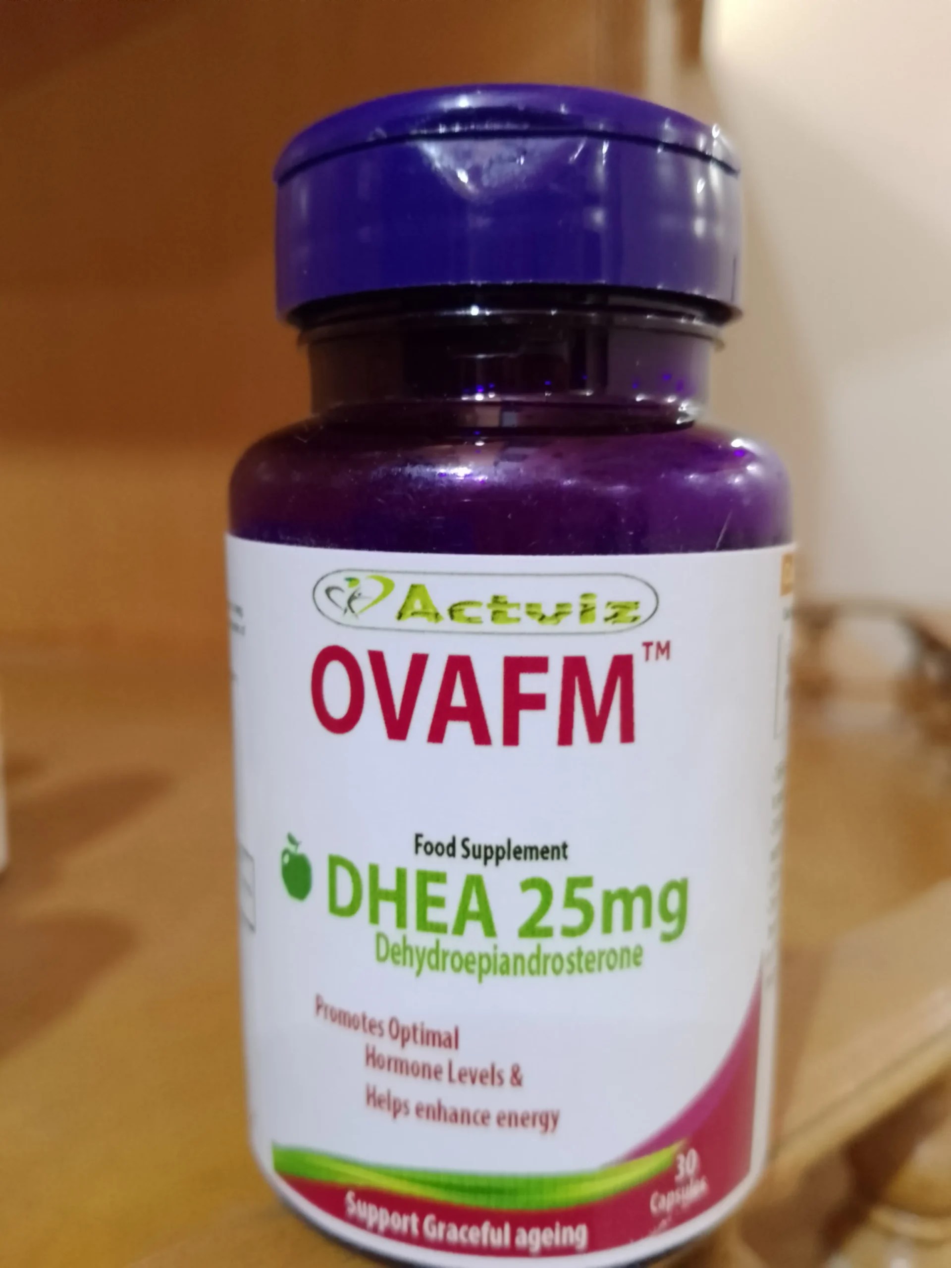 Actviz Brand Ovafm contains dehydroepaindrosterone (DHEA) for women to help improve egg quality and general fertility to help maximize chances of conception either naturally or through IVF treatment.
